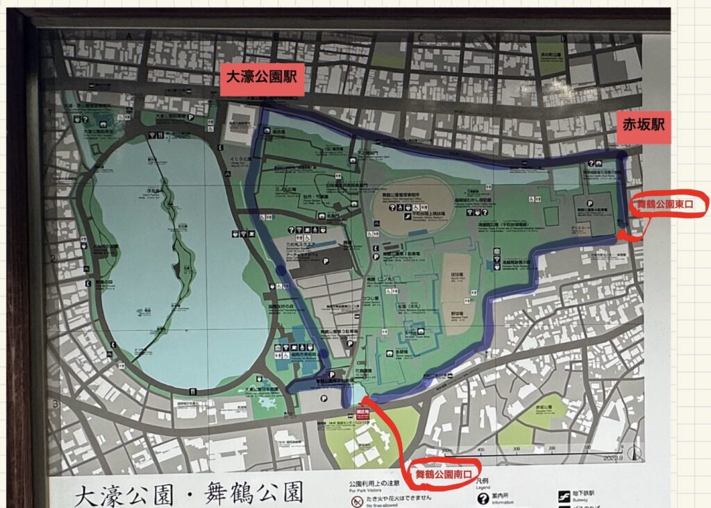 ▲地下鉄『赤坂駅』から公園方面に直進して、お堀の端っこから左折すると見えてくる東口